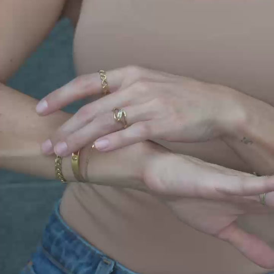 Sumérgete en la elegancia sofisticada con nuestro Anillo de Oro de 14K con Brillantes en forma de baguette. Este anillo es una obra maestra de diseño que combina la belleza del oro de 14 quilates con la elegancia geométrica de los brillantes en forma de baguette. Cada piedra es una declaración de estilo y singularidad, añadiendo un toque contemporáneo y sutil a tu look. Lleva este anillo para destacar con gracia en cualquier ocasión, y permite que la luz y el brillo de los brillantes en forma de baguette iluminen tu camino con sofisticación y clase