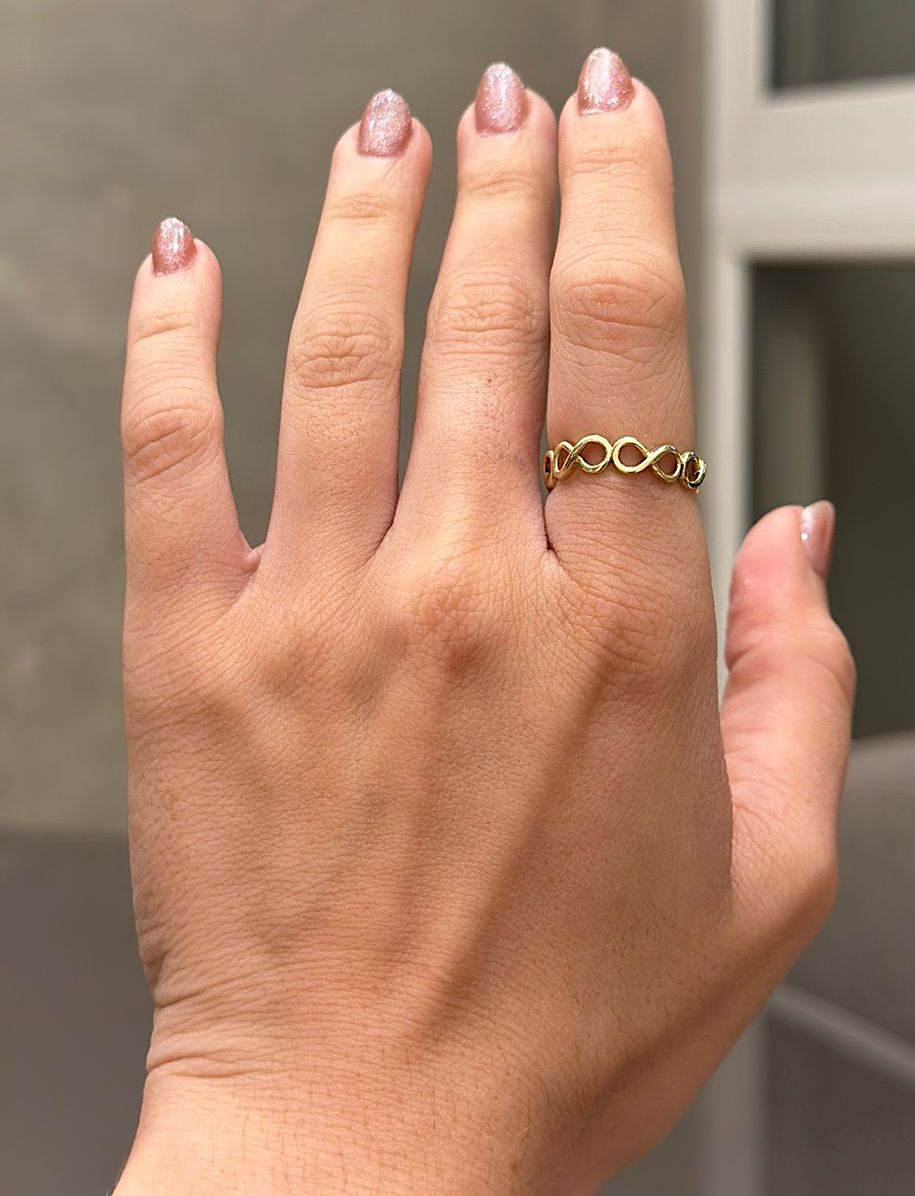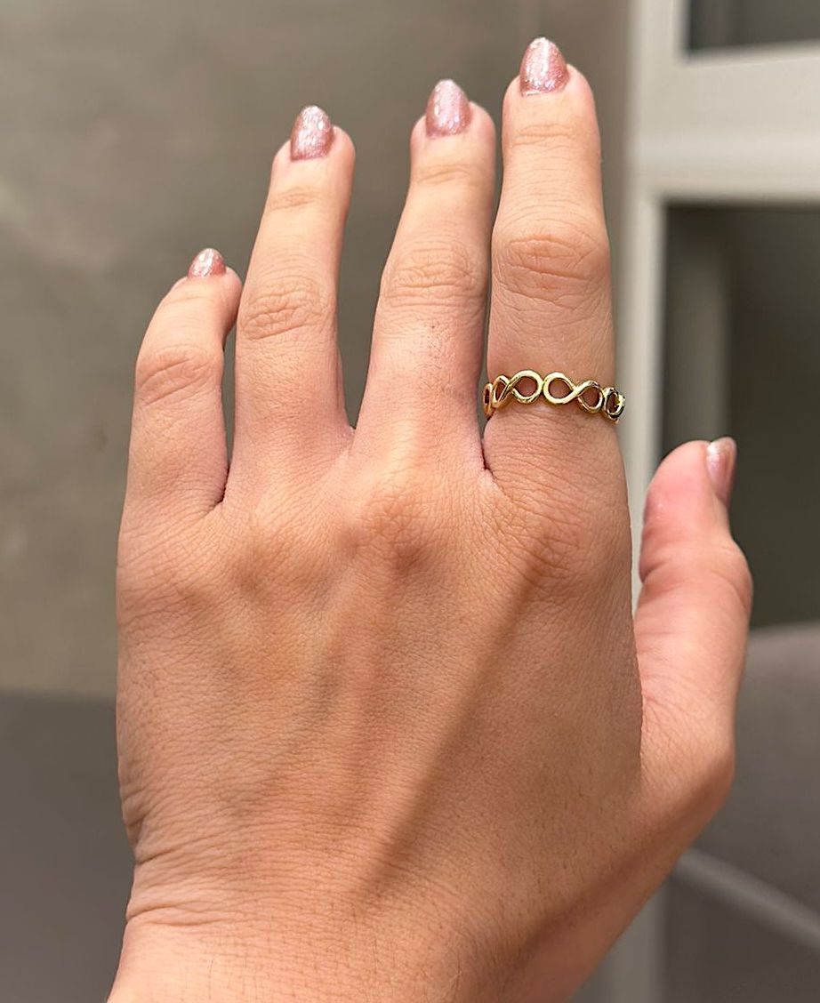 El amor y la infinita belleza se entrelazan en nuestro Anillo de Oro de 10K con un diseño de infinitos. Este anillo es más que una joya; es un símbolo de amor eterno y unión inquebrantable. Cada bucle del infinito representa un viaje compartido y un futuro sin fin, todo capturado en el brillo del oro de 10 quilates. Lleva este anillo para expresar tu compromiso o para celebrar un amor sin límites. Con un diseño elegante y significativo, este anillo se convertirá en una pieza preciosa en tu colección de joyas, atesorando momentos invaluables y recuerdos eternos