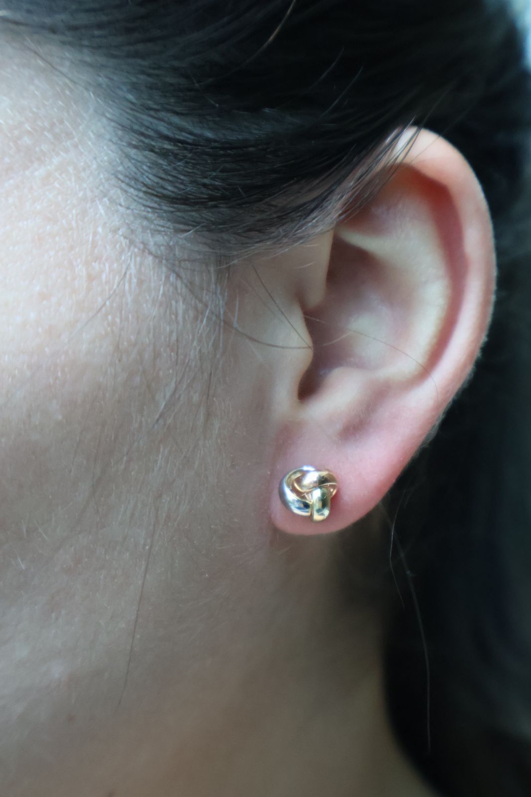 Oro de 10k Studs con Diseño de nudo en 3 oros